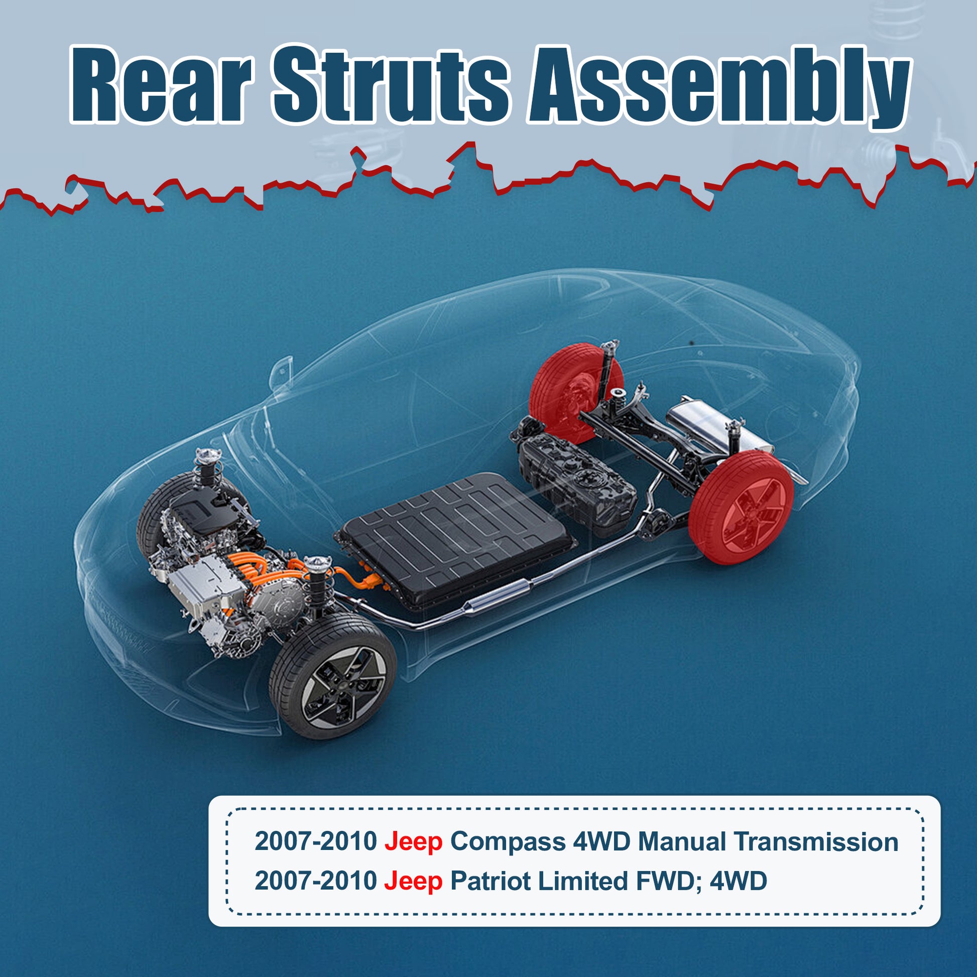 Vextone Rear Struts Shock Absorbers Coil Spring Assembly Fit for 2007 2008 2009 2010 Jeep Compass 4WD Manual Transmission – Noise Reduction & Comfort Upgrade – Replaces OEM 472401 (Pair)