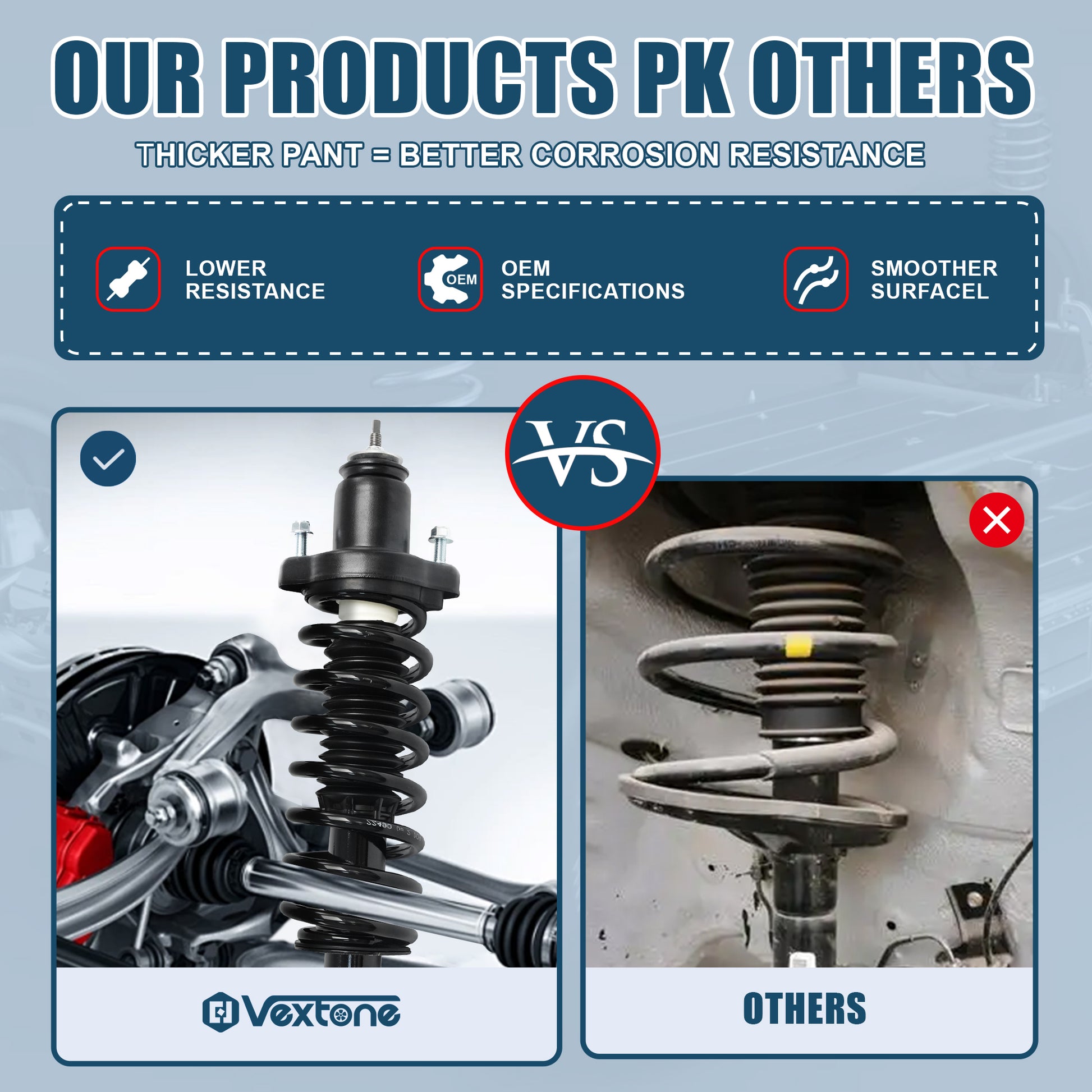 Upgrade your ride: Our coil springs keep your car stable, reduce vibrations, and improve handling for a smoother drive. |